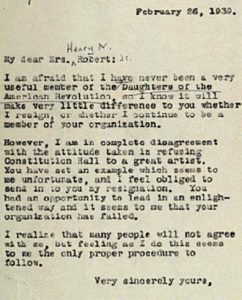 As civil rights advocate decades before there was a civil rights movement, Eleanor Roosevelt became a promoter of racial integration in the military, advocated federal laws designating lynching as a hate crime, and promoted equal access for African-Americans to federal opportunities and benefits coming out of the New Deal. In 1939 came her most famous gesture. When the Daughter of the