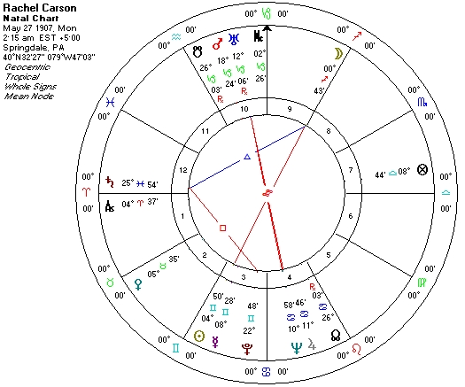 2. Very well done, sir. I’ve studied her chart and life to some degree, but you have outdone my efforts. (I did, however, get confused in the “Let’s Go Traditional” section, though I do use profections.) The quality of Ms. Carson’s writing in Silent Spring is unusual, in my view, in that it is uncommonly accessible to a non-scientific reader, and is at times poetic.