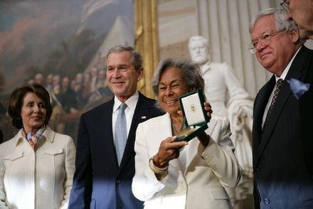 Rachel Robinson receiving Congressional Gold Metal for her husband in 2005