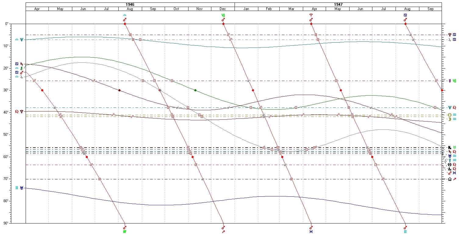 Graphic Ephemeris 1945-1957; notice Pluto’s long transit of Robinson’s Sun and Moon