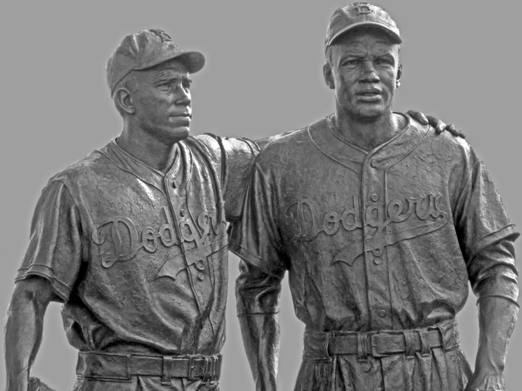 During the 1947 Brooklyn Dodgers baseball season Robinson was the first black major-league player since the 1880’s. He impressed the entire country with his quiet dignity and skill as a ballplayer.  Robinson fulfilled a promise previously made to owner/president Branch Rickey before he signed with the Dodgers, not to retaliate or respond angrily to the catcalls, dirty play, and thousand large and little insults he endured. Robinson’s heroic perseverance resulted in success for himself and many black players who quickly followed him into the major leagues, and left an array of acknowledgments and awards in and outside baseball.
