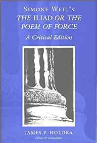 “The true hero, the true subject matter, the center of the Illiad is force.” Immediately Weil takes on the standard interpretation of the poem as a glorification of the hero. She immediately spots the fact that what we call heroic valor and endurance is in truth a temporary intoxication by force that will not relax its grip and will eventually turn back on the “hero” himself.