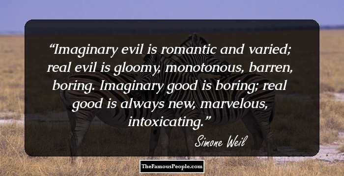 The Christian thinker in her also comes out. She evokes Pontius Pilate asking Jesus what truth is. Weil replies: “Truth is all the thoughts that surge in the mind of a thinking creature whose unique, total, exclusive desire is for the truth.” (p. 21) She opposes this to “truth plus something else.”