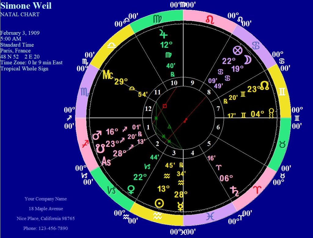 Whole Sign Houses and Simone Weil’s chart